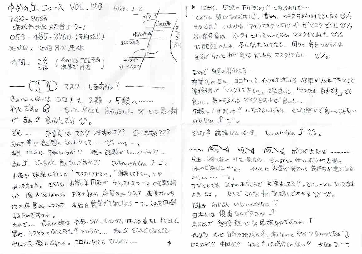 お客様の為にも衛生管理をより一層気を付けて頑張っていきます。